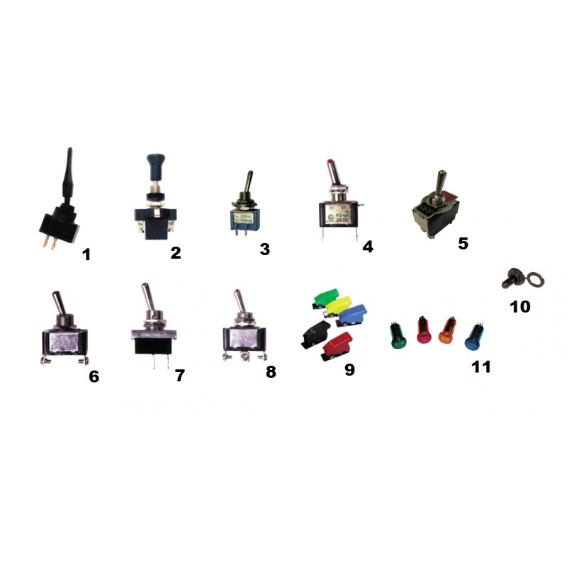 11. Voyant lumineux 12V bleu, rouge, orange, vert (précisez dans votre commande).