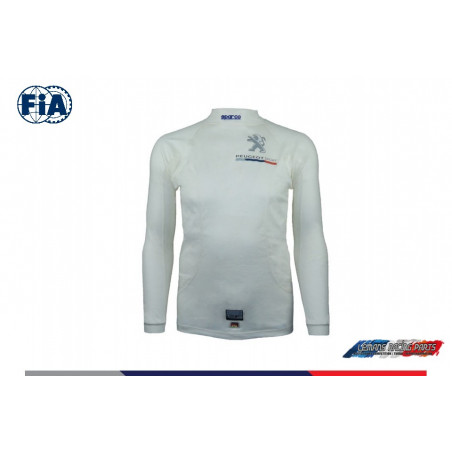 Son tissu Soft-Touch sparco, sérigraphié et ignifugé aux couleurs de Peugeot Sport.