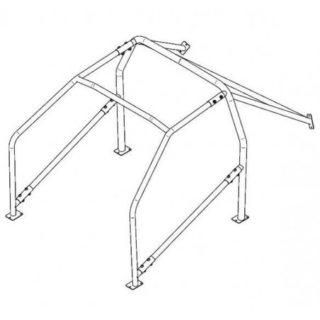 Arceau 6 points à boulonner, conçu en acier Fe45. Nous vous conseillons de faire passer la partie arrière de l'arceau par le côté passager afin de faciliter le montage.