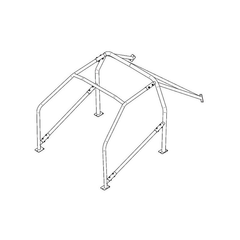 Arceau 6 points à boulonner, conçu en acier Fe45. Nous vous conseillons de faire passer la partie arrière de l'arceau par le côté passager afin de faciliter le montage.