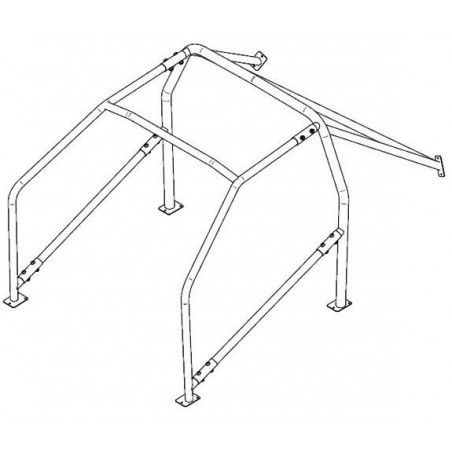Arceau 6 points à boulonner, conçu en acier Fe45. Nous vous conseillons de faire passer la partie arrière de l'arceau par le côté passager afin de faciliter le montage.